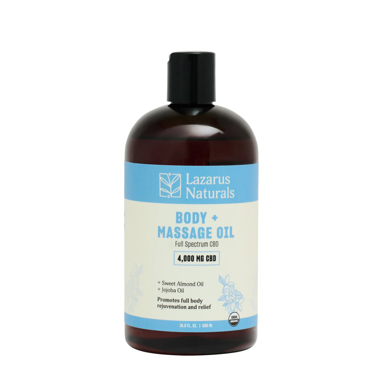 Lazarus Naturals, Unscented CBD Massage Oil, Full Spectrum, 16.8fl oz, 4000mg CBD